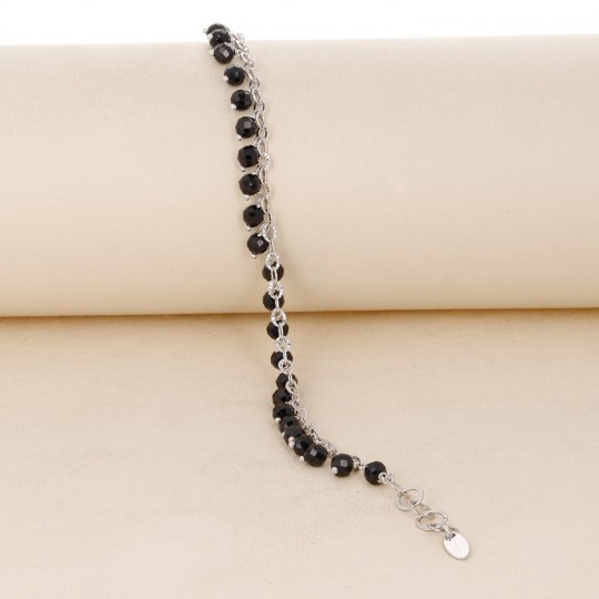 Bracelet made of charms with natural stones of black spinal cord, faceted cut. Made with chain ovaline bare and snap closure with adjustable chain ring flat in silver 925‰.