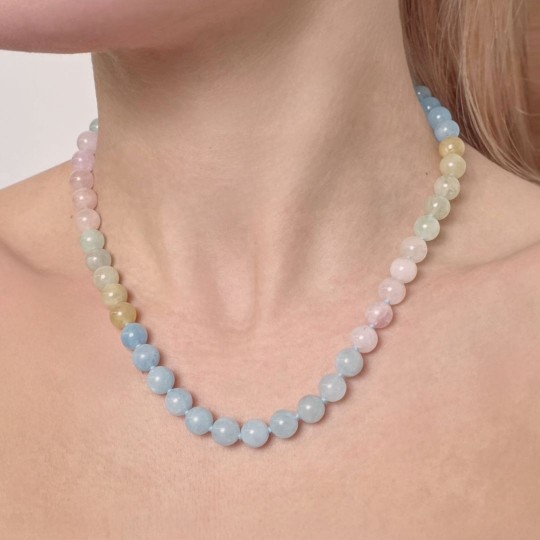 Multi-colored aquamarine necklace with faceted washer