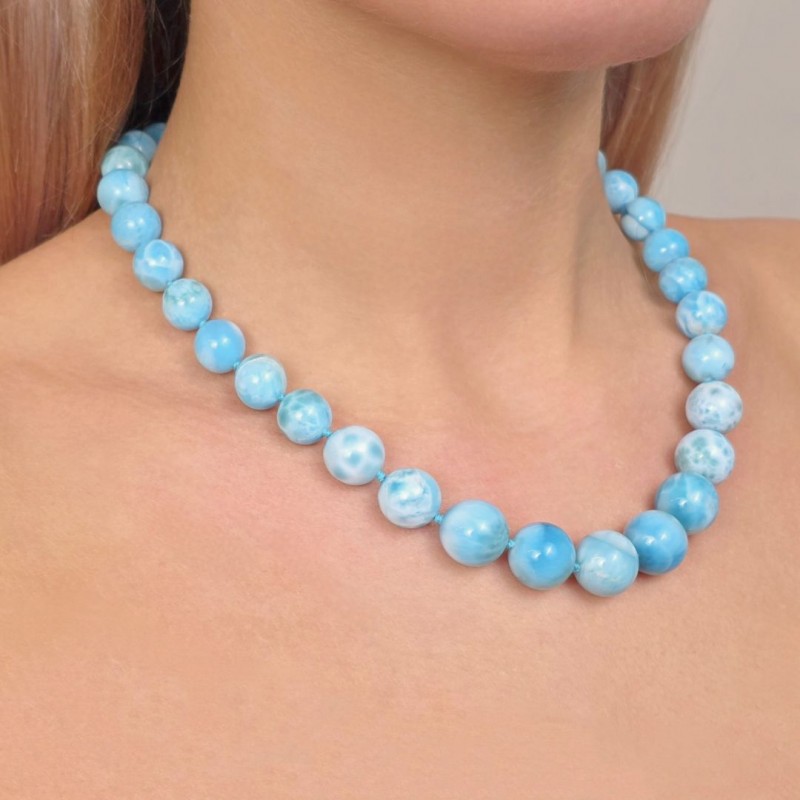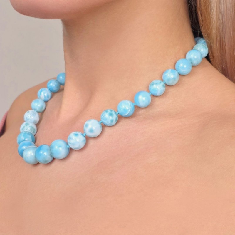 Collana di Larimar Sferico a Scalare ø 8/14,5 mm