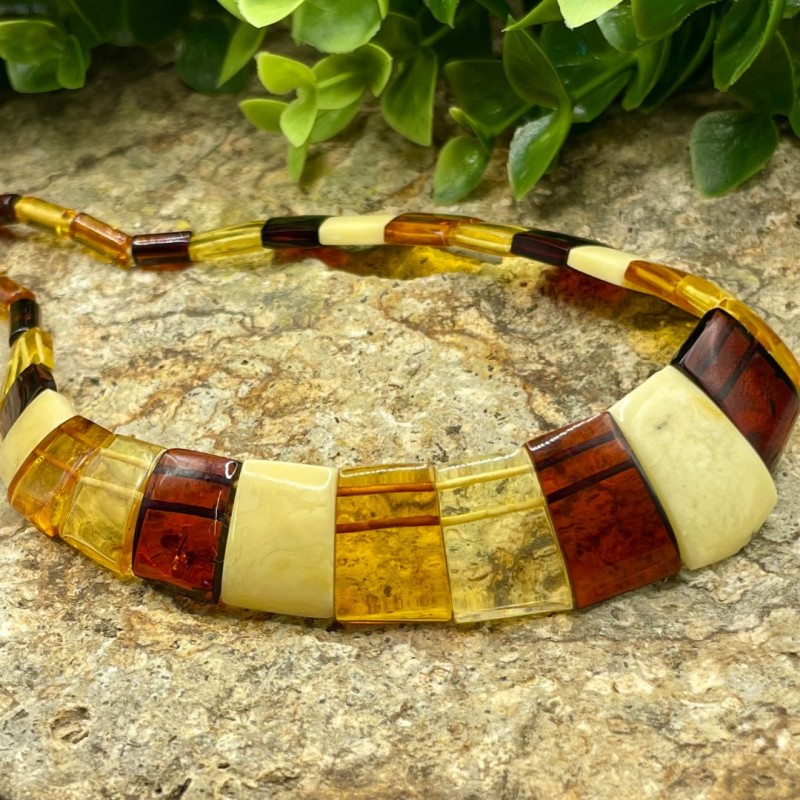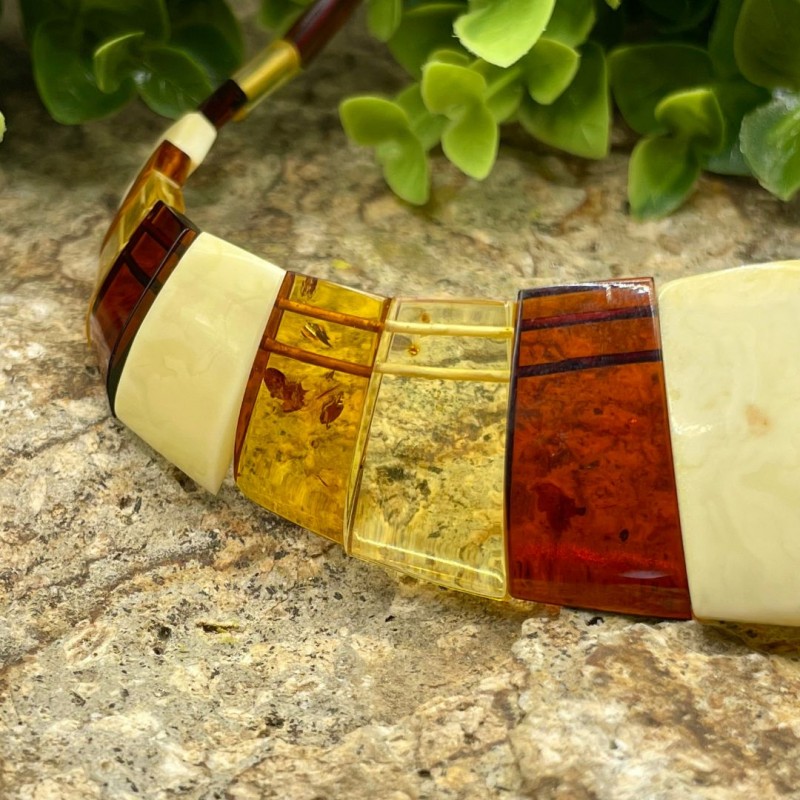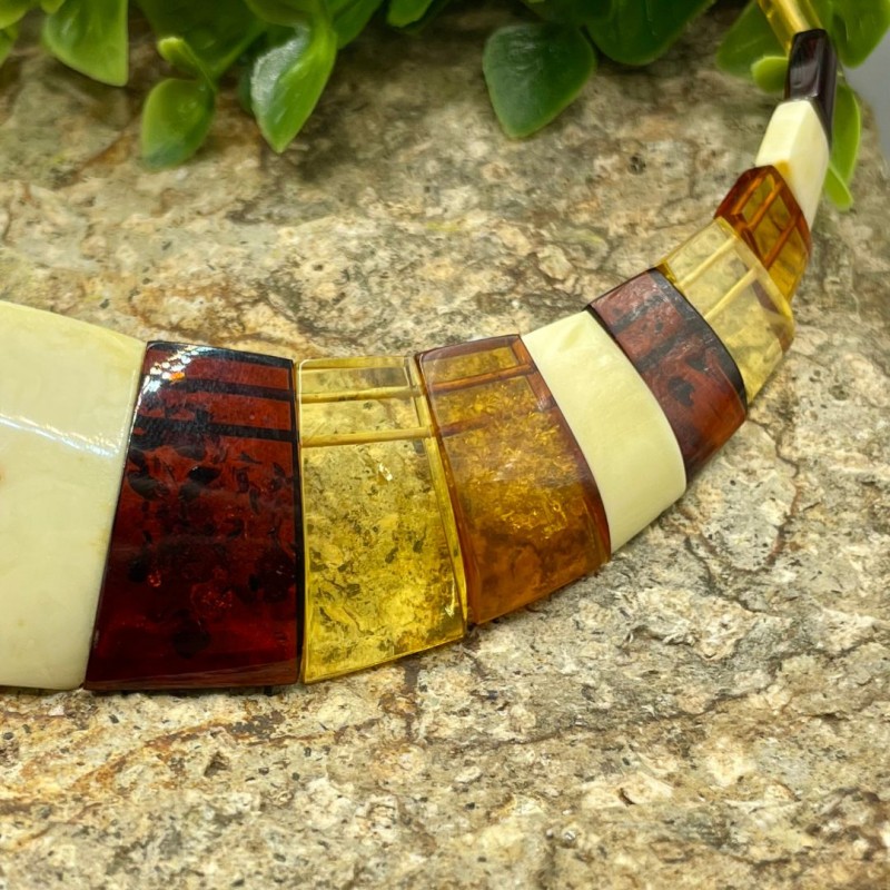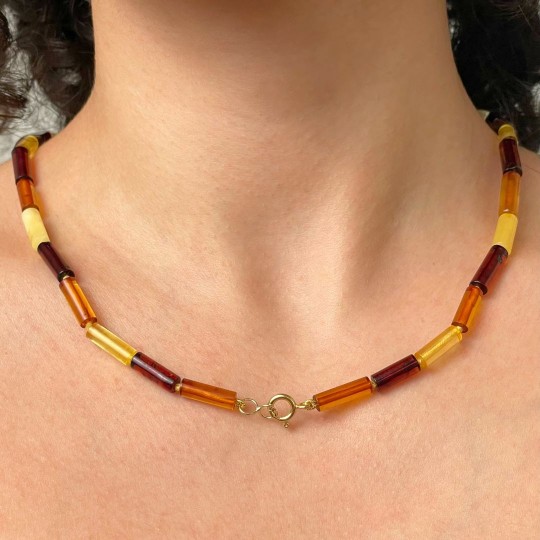 Multicolor and Real Baltic Amber Necklace with Gold Clasp