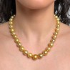 This authoritative necklace of high jewellery sees as undisputed protagonists of the beautiful Australian gold pearls. Their shape is baroque but very regular and the perlagion is perfect. Closes the jewel a finely worked carabiner and a handy octin both in silver 925‰.