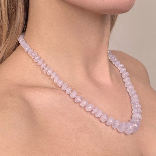 Beautiful necklace made of faceted washer quartz, arranged in gradation to scale for an elegant and sophisticated effect. Completed by a 925‰ silver snap hook closure, this necklace is distinguished by its refined design and the quality of materials. With a length of 51 cm and a weight of 270 carats, is an ideal accessory for every occasion.
