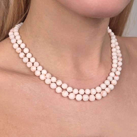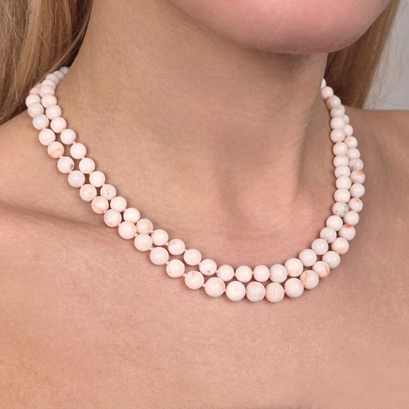 Perfect as a gift for a special person or as a precious addition to your jewelry collection, this spherical pink coral parallel string necklace is an extraordinary example of craftsmanship and refined design. Order now and enrich your style with this exclusive and charming jewel.