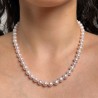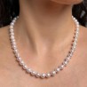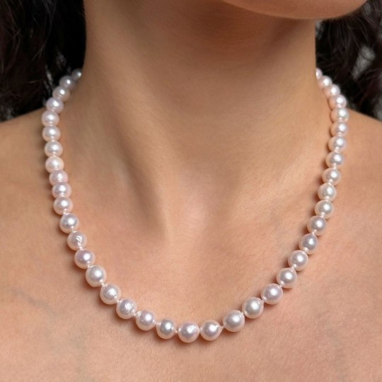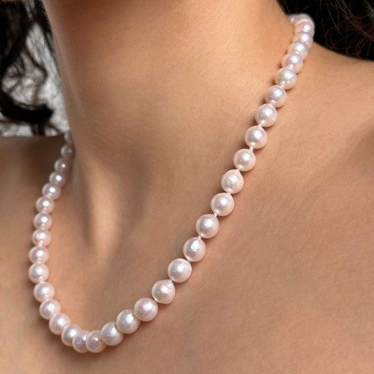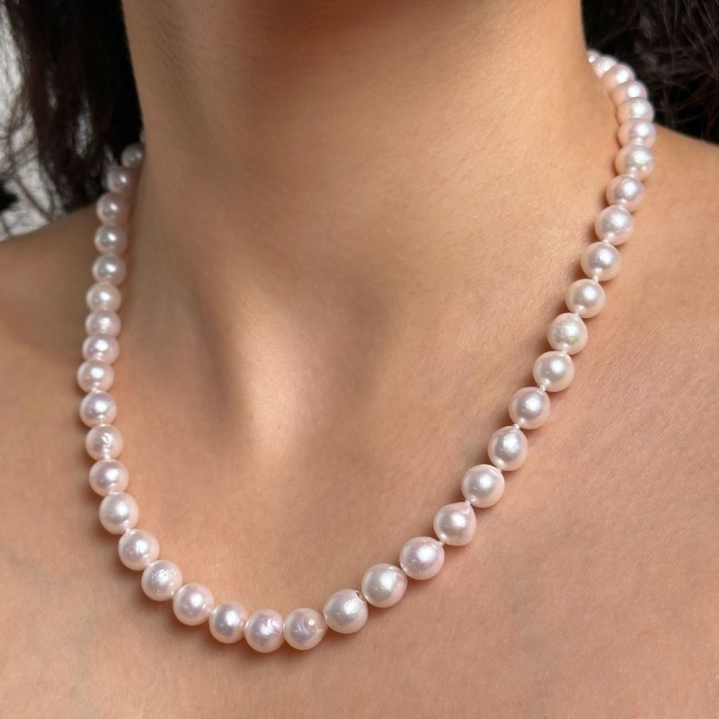 Wearing the authentic charm of Akoya pearls is an experience to try. Each pearl (7–7,5 mm), captures light with pink and natural reflections. The finely crafted 925‰ silver carabiner adds a touch of style to the whole. With its 46 cm long, this necklace is elegantly placed on the neck and is ideal to give personality to a sober look or to give light to a combination of more necklaces. A piece that combines the appeal of the sea to the authenticity of crafts made in italy, ready to become your new classic.