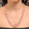 Crew neck necklace with natural pink quartz stones, smooth stone cut to scale. Made with 925‰ gold silver snap.