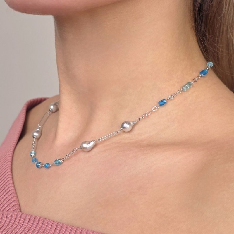 Collier con Tanzanite, Apatite e Perle