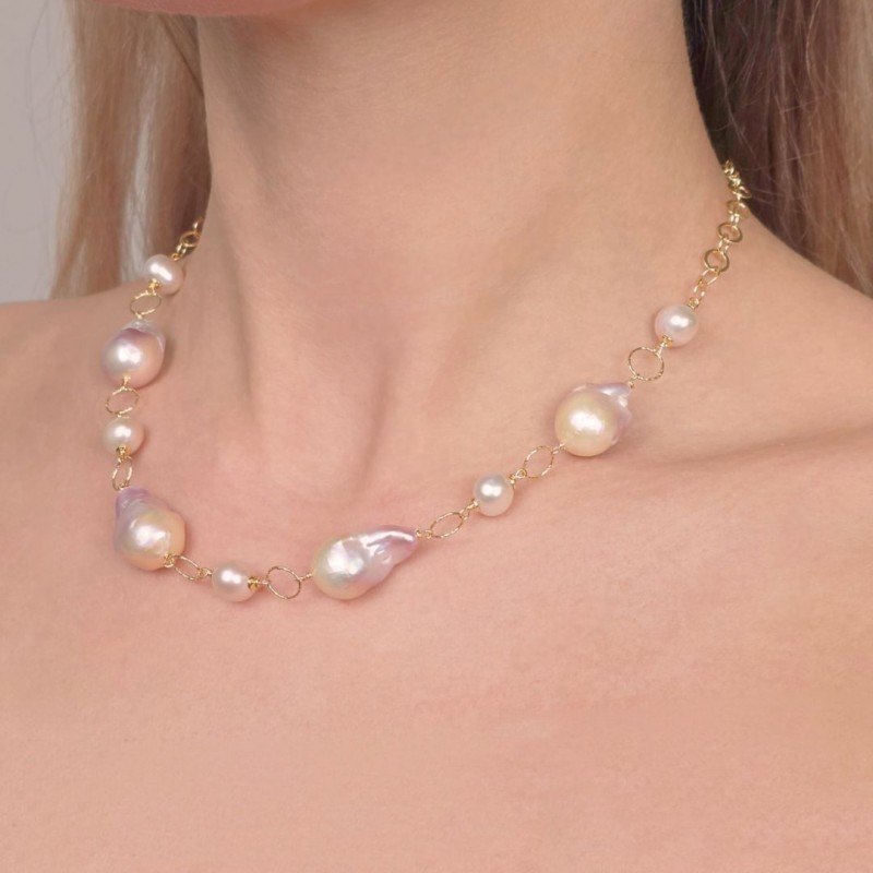 Collier with 7 Baroque Pearls with Flame Nucleus