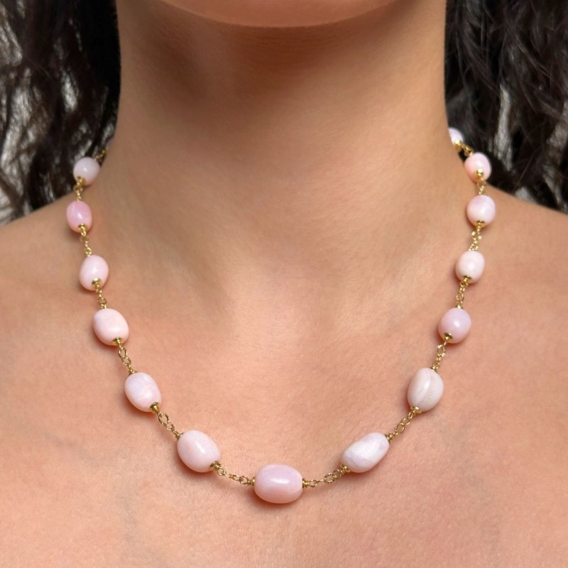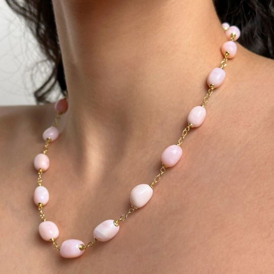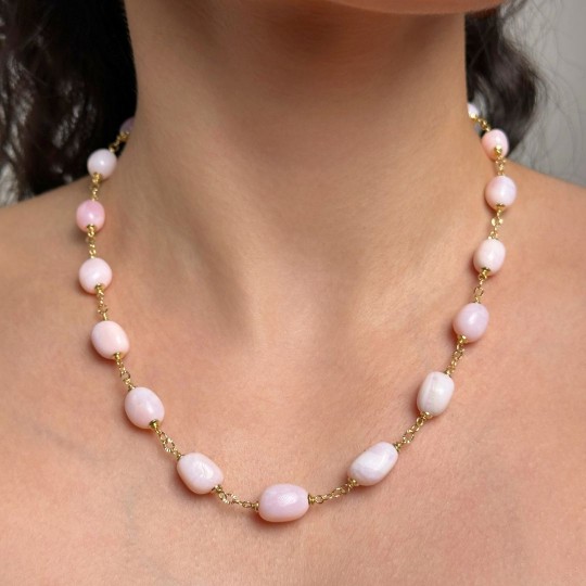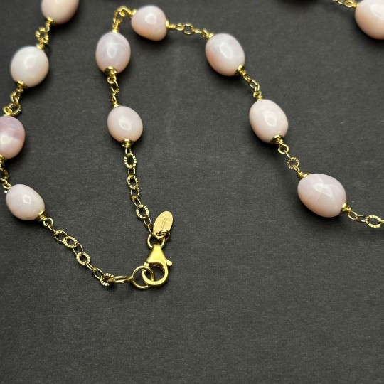Collier with natural stones of Opale Rosa, smooth stone cut. Finishes and closure in Golden Silver 925‰.