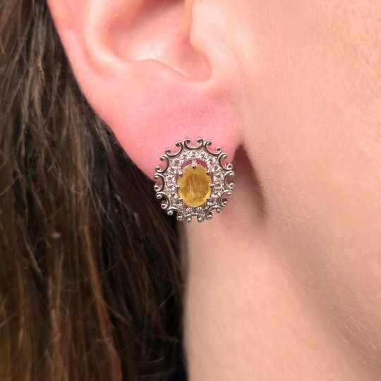 Parure di Anello, Orecchini e Pendente con Zaffiro Giallo Ovale e Rotondo
