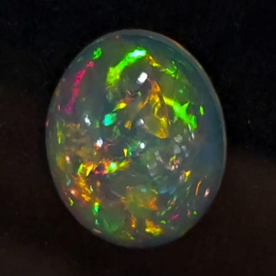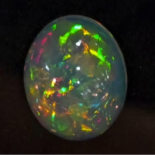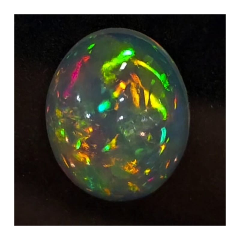 An explosion of light and color: this opal natural ethiopian, cut cabochon in oval form from 15,4x12,4 mm, releases all the magic of its internal color game.