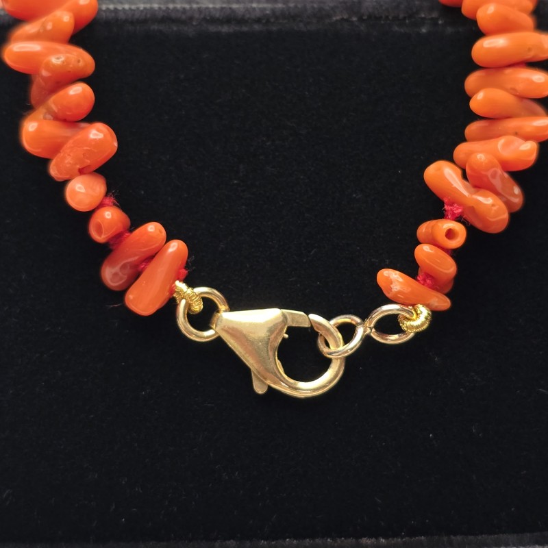The different shades of coral red add depth and visual interest, making this necklace a unique and charming jewel.