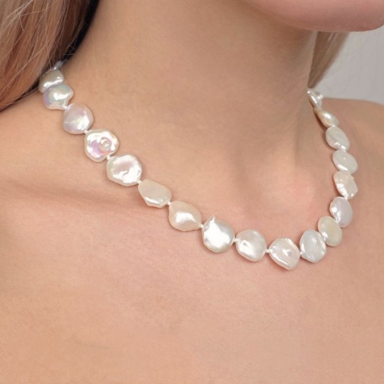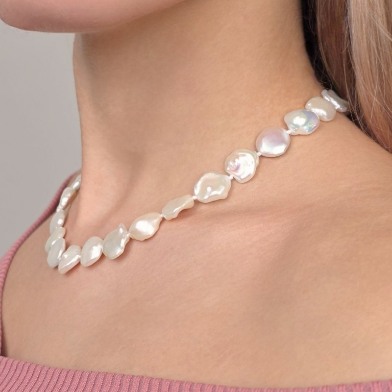 Collana di Perle Keshi Bianche ø 7,5/8 mm