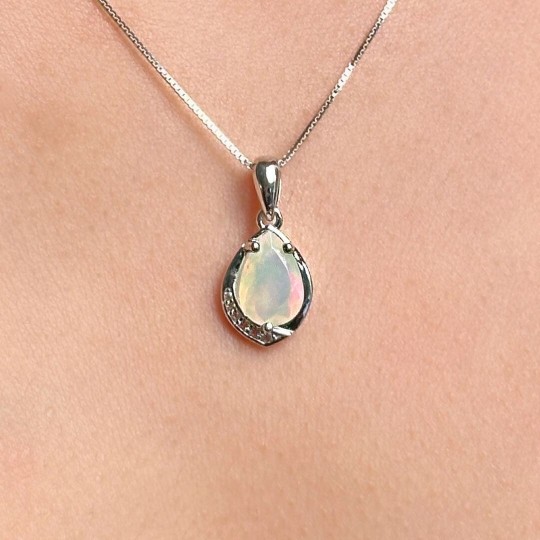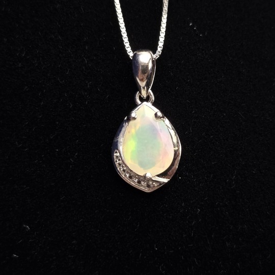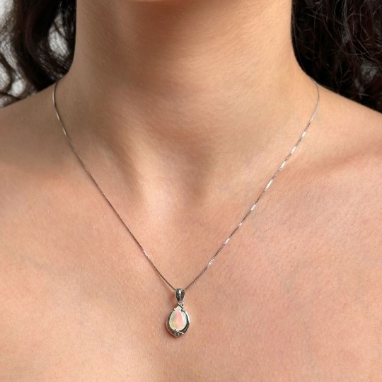 This pendant made of 925‰ silver, has a natural stone of opal Ethiopian cut to drop faceted to enhance even more the typical light game of this stone. The Venetian model chain is 45 cm long with spring ring closure, enhances the decolleté without weighting.