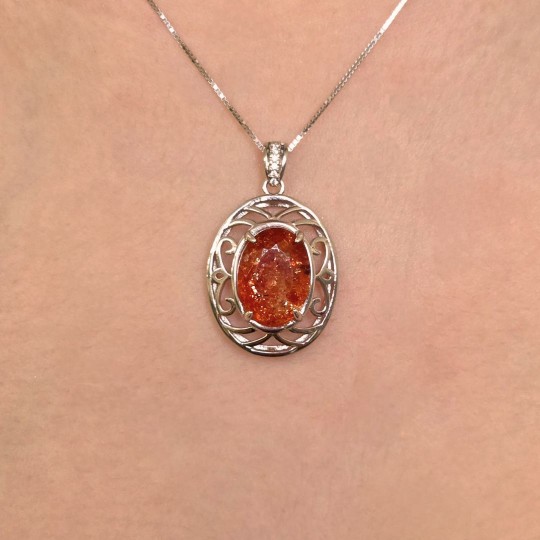 Pendente con Pietra del Sole a Cuore e Catenina