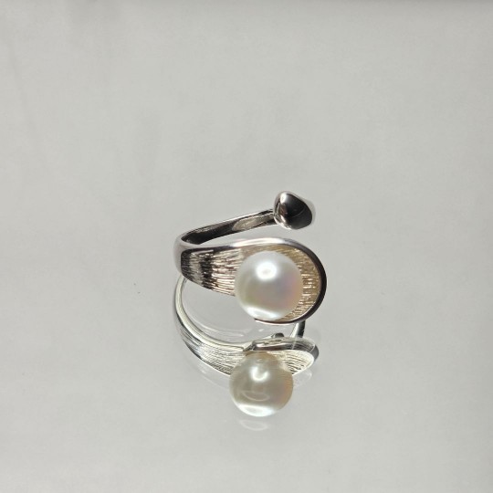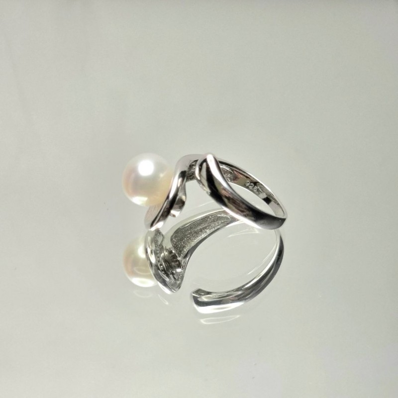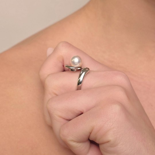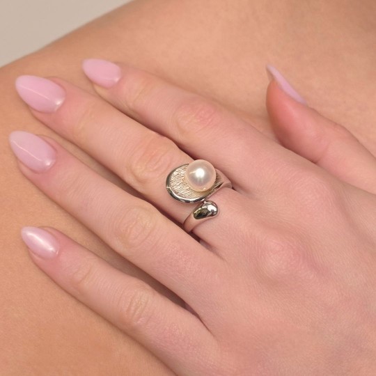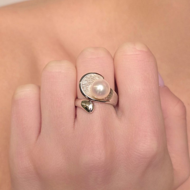 Anello con Foglia Satinata e Perla Semiround ø 8,5/9 mm