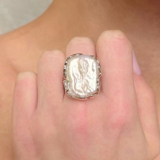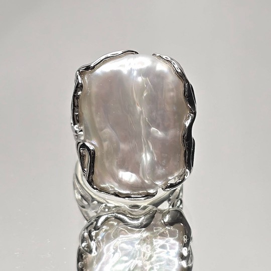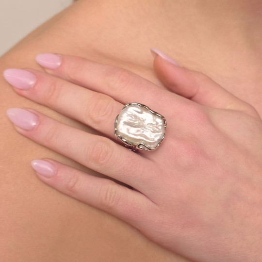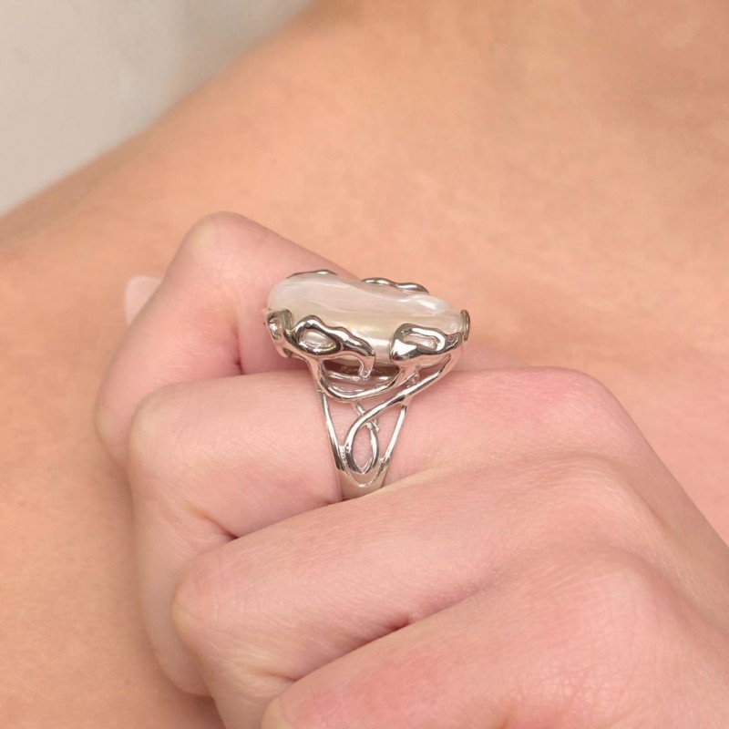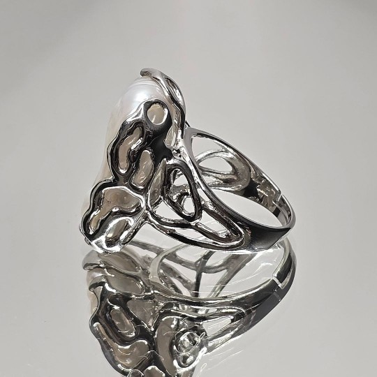 Anello Rami e Foglie con Perla Barocca Bianca