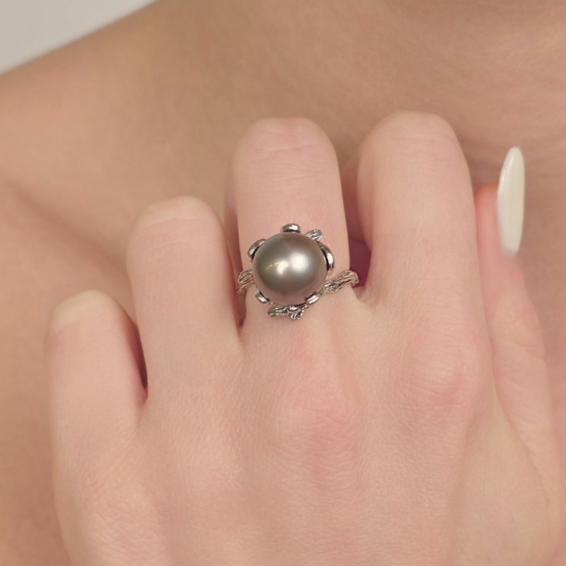 Anello Trifoglio con Perla di Tahiti