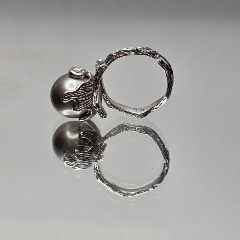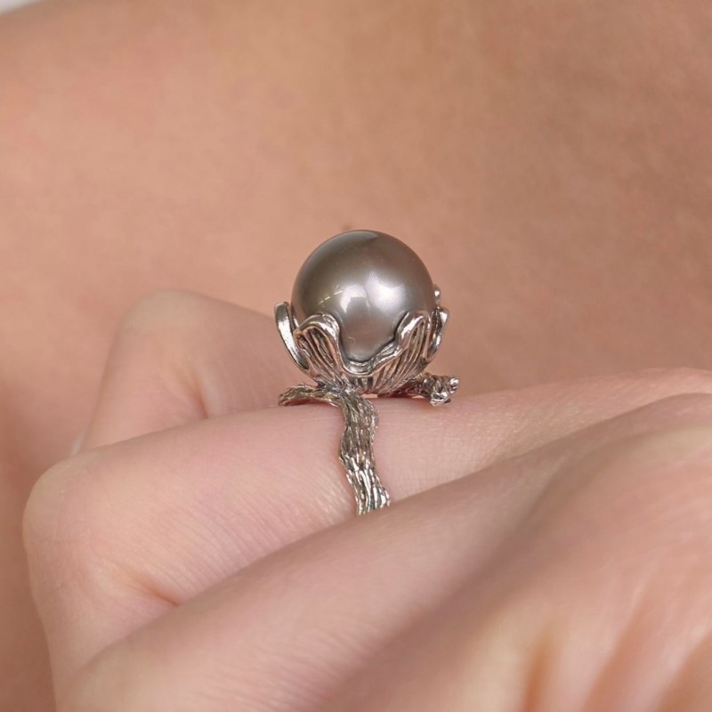 Contrariè ring with Pink Pearl and Tahiti