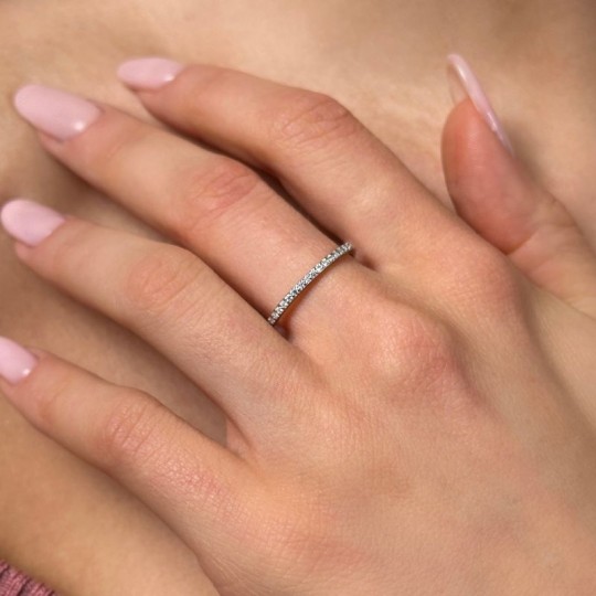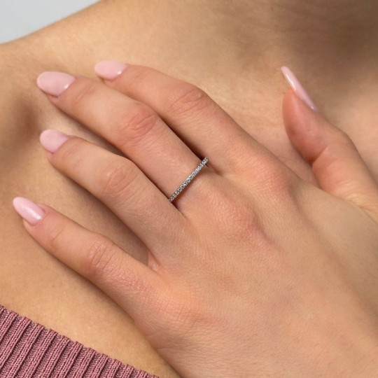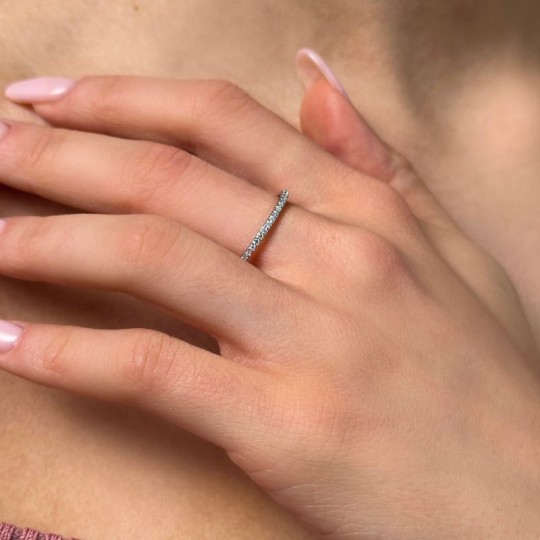 Ring with synthetic moissanite stones, round cut faceted. Round silver frame 925‰.