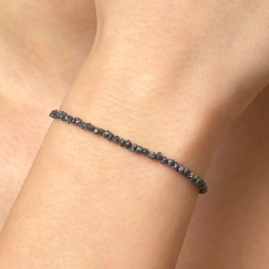 Bracelet strung on cave with natural stones of raw black diamonds to scale. Made with rectangular snap hook closure and adjustable chain diamond rings 925‰