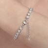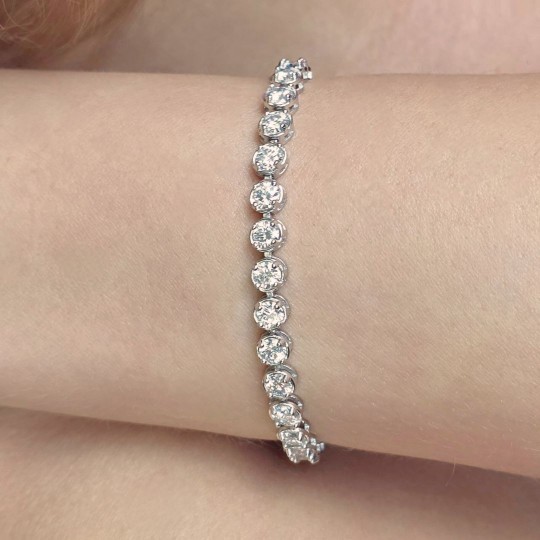 Bracelet model tennis with synthetic stones of moissanite, round cut faceted. Made with snap hook closure and adjustable oval smooth chain in 925‰ silver.