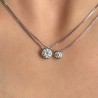 Pendant with synthetic moissanite, round cut faceted. Round silver frame 925‰.