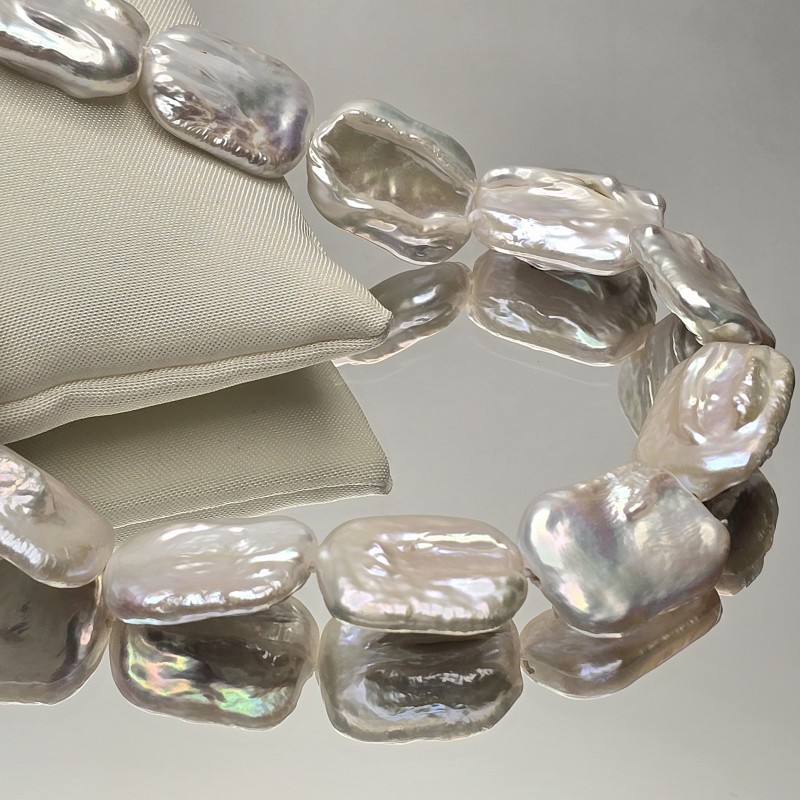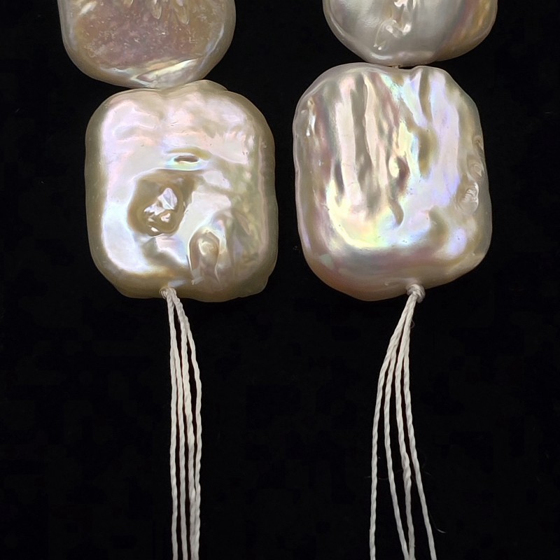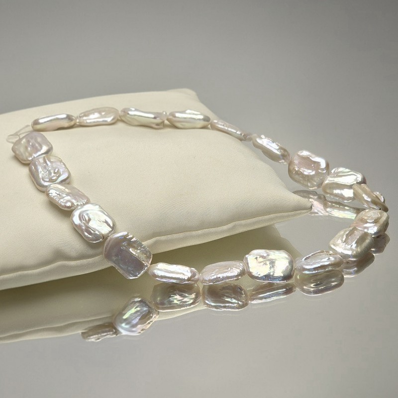 Wire with natural pearls of white baroque fresh water with nucleus, flat rectangular shape.