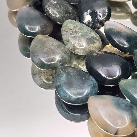 Thread with natural stones of musk agate, smooth flat drop cut.