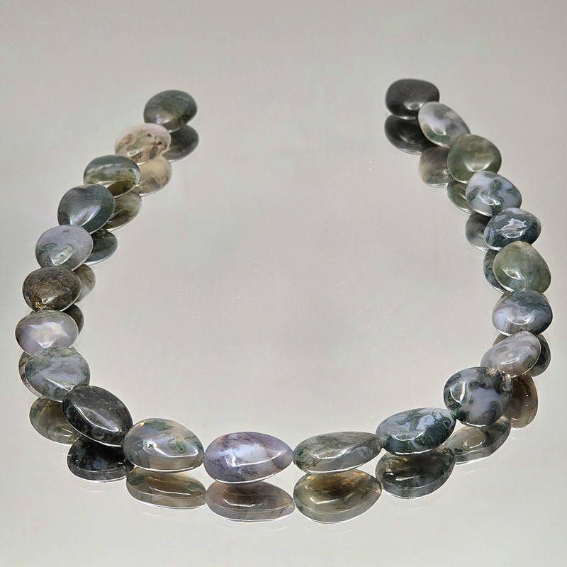Thread with natural stones of musk agate, smooth flat drop cut.