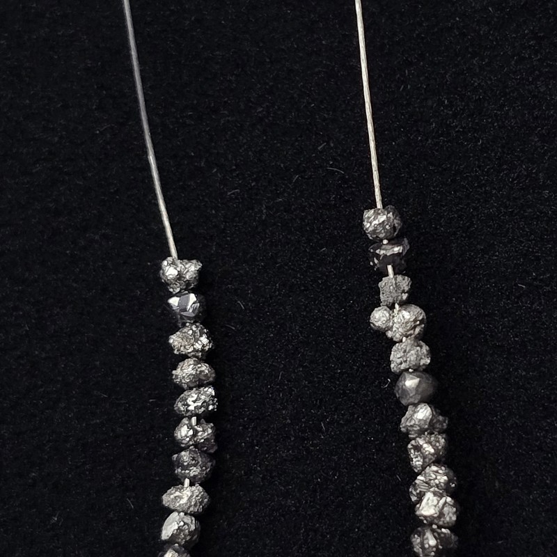 Wire with natural stones of raw black diamond to scale, cut fantasy.