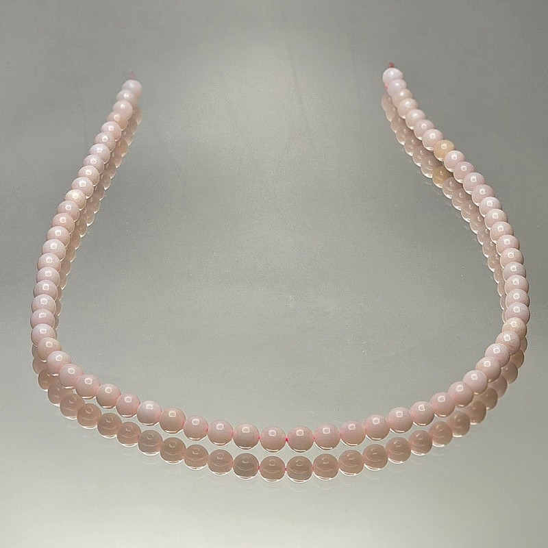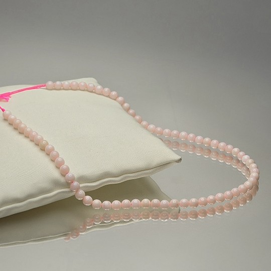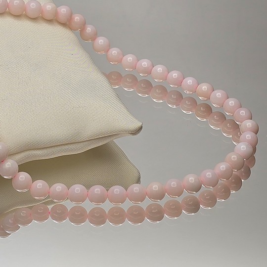 Strand with natural multi-shade pink opal stones, smooth spherical cut.
