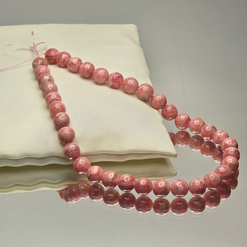 Wire with natural rhodochrosite stones, smooth spherical cut.