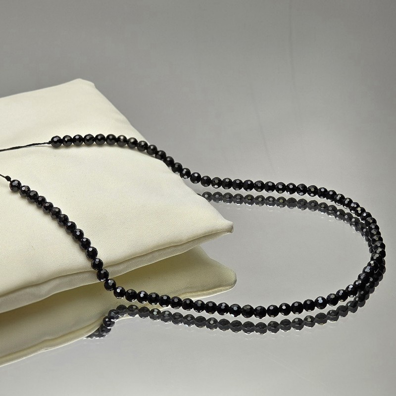 Wire with natural stones of black spinal cord, faceted spherical cut.