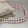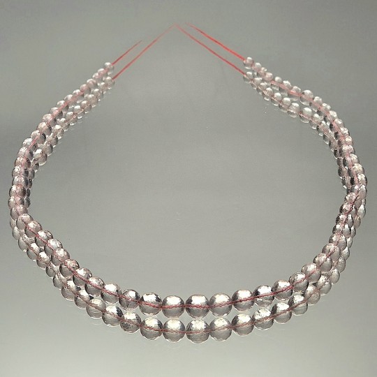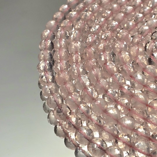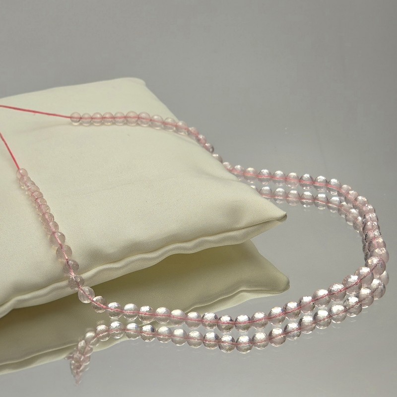Thread with natural stones of pink quartz, faceted spherical cut to scale.
