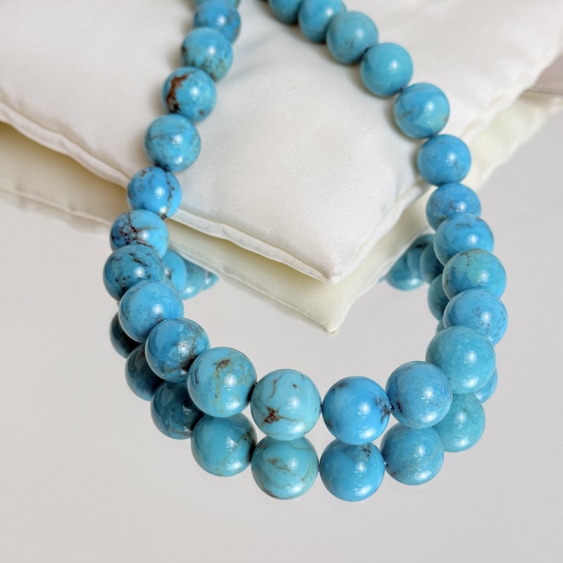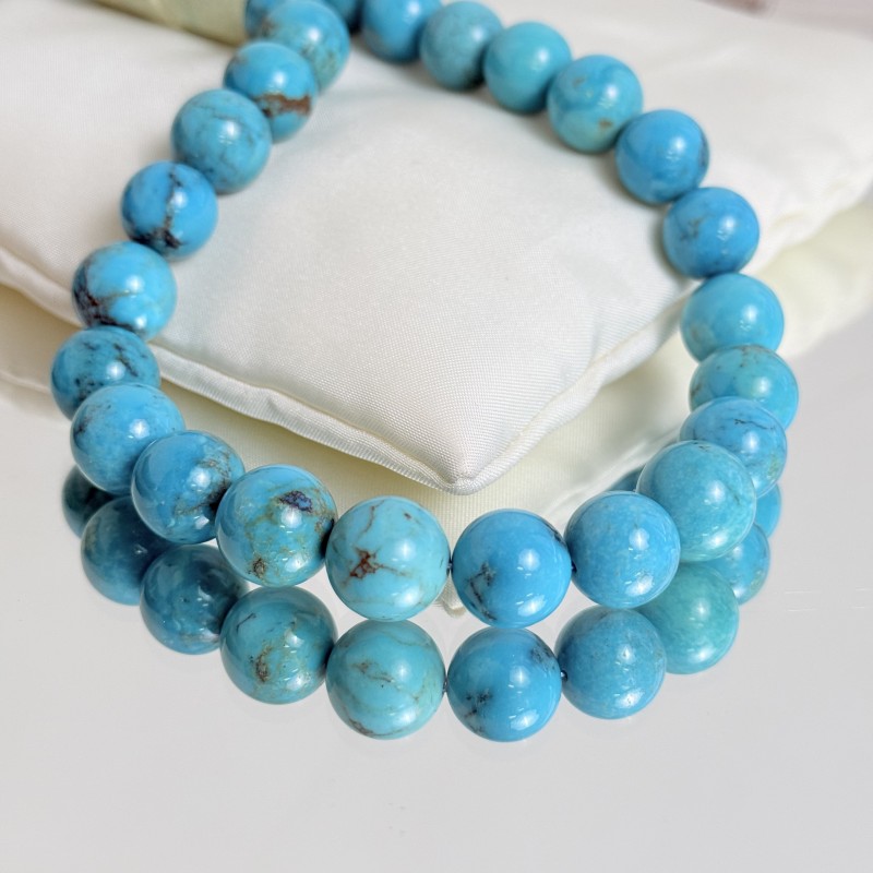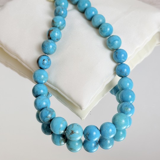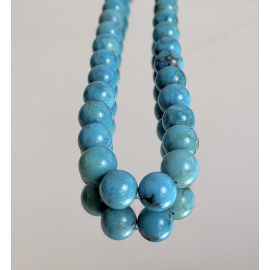 Thread with natural turquoise stones with traces of matrix, smooth spherical cut.