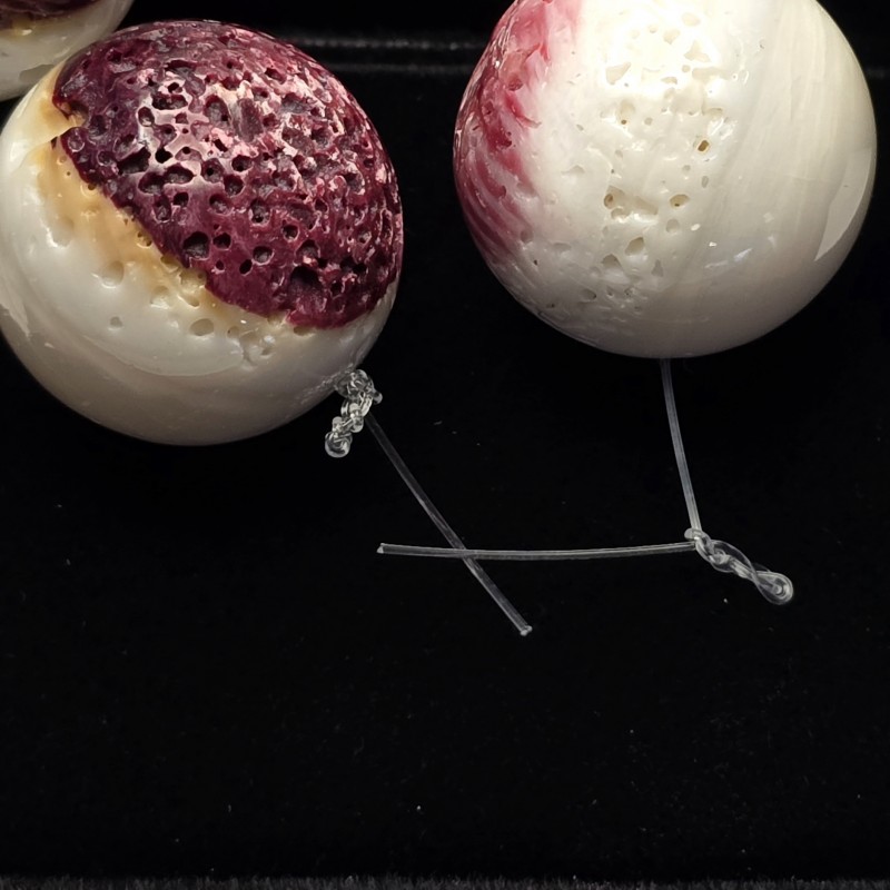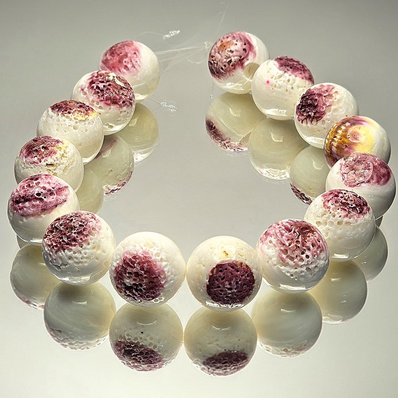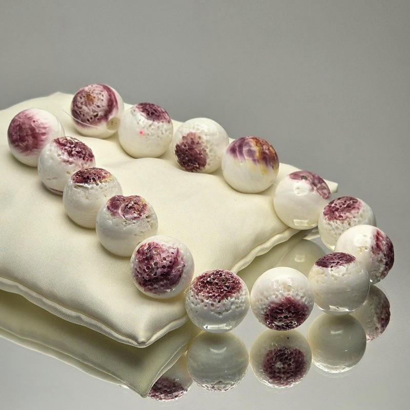 Natural spiny shell thread, white and purple color, smooth spherical cut.