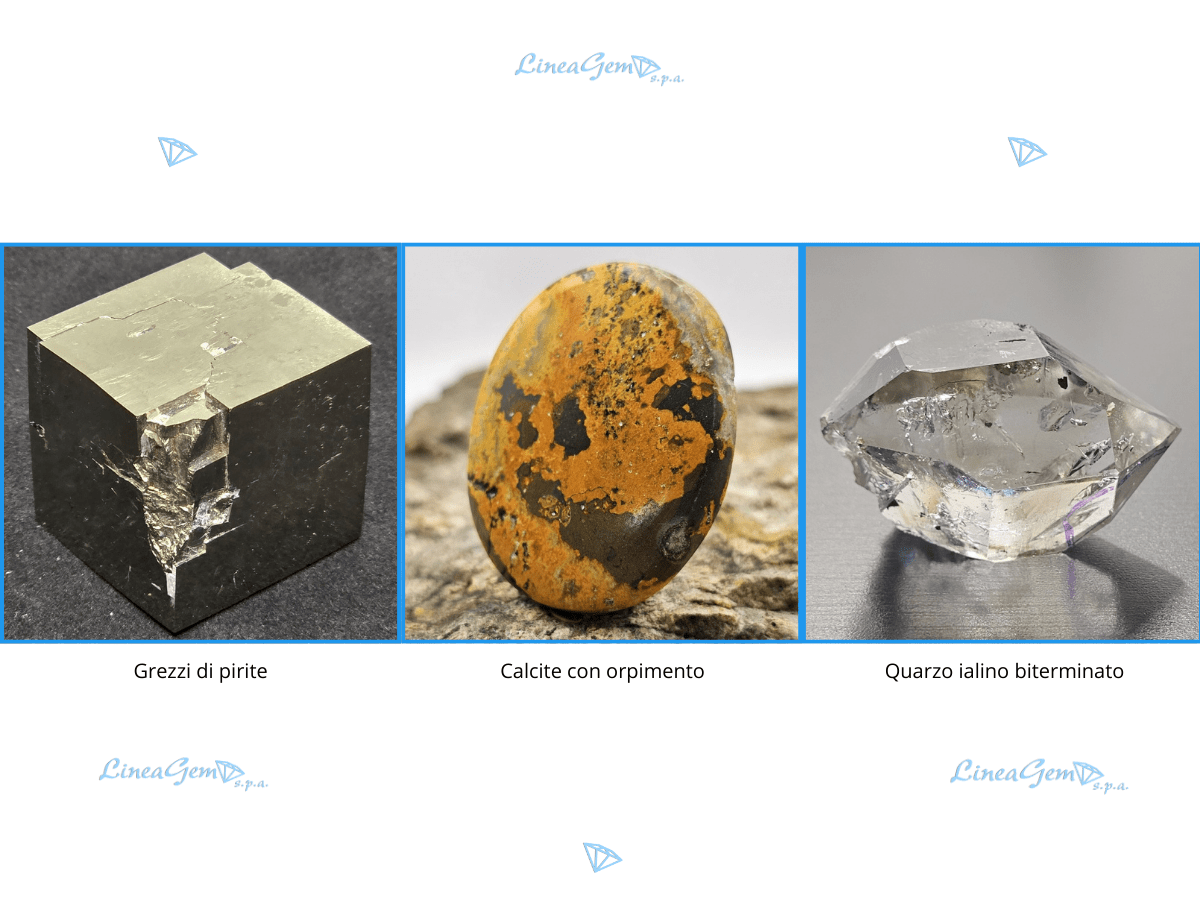 - Calcite: molto varia per colore e forma, spazia dal bianco, al miele e all'arancione.