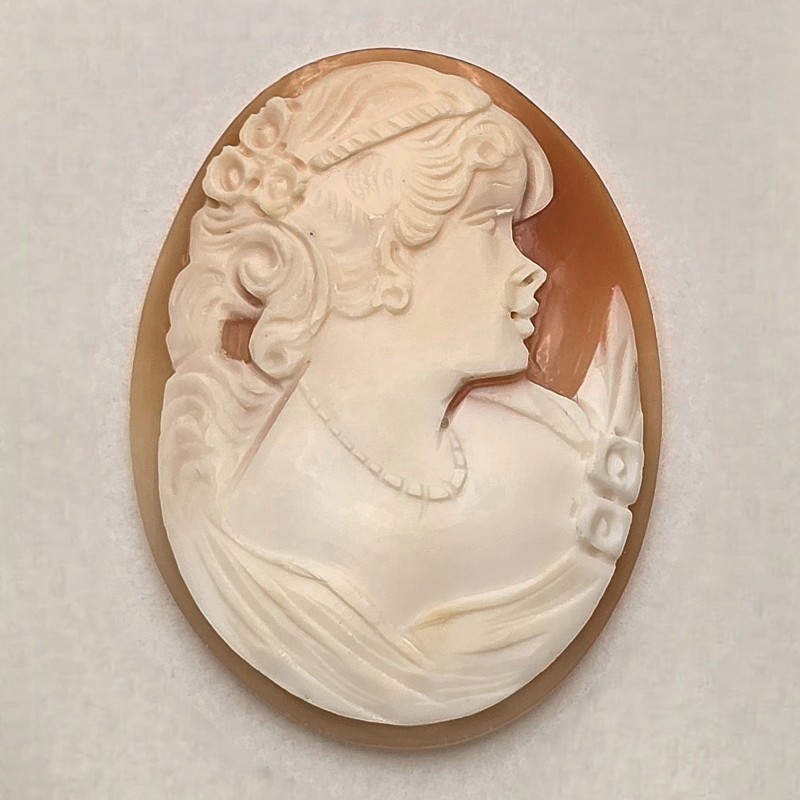 Pietra Cammeo su Conchiglia Volto di Dama ø 45x33 mm